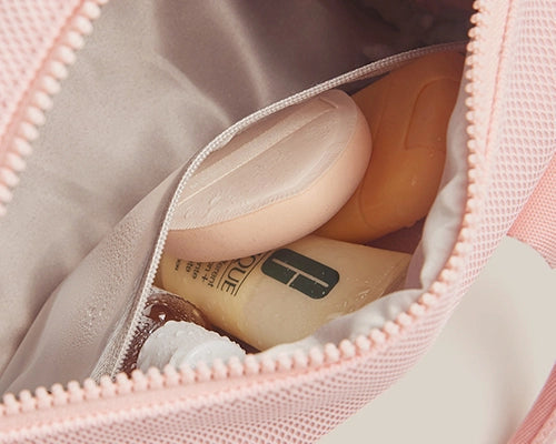 .• PVC waterproof pocket for storing toiletries, keeping them separate and secure.